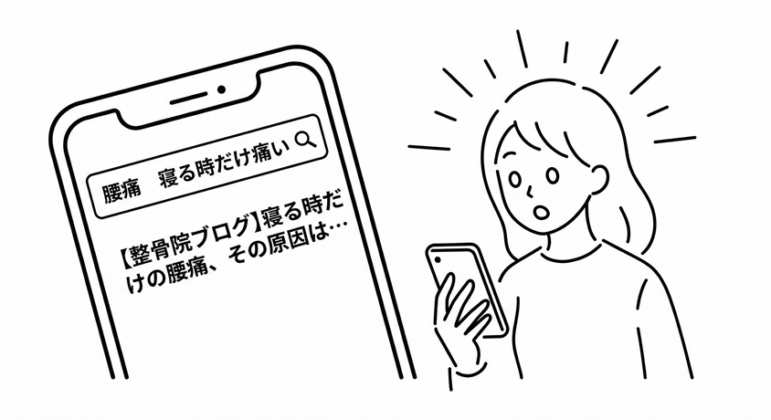 「腰痛」のようなビッグワード単体では競合が多く埋もれてしまいますが、ブログなら「腰痛 寝る時だけ痛い」「朝起きると腰が痛い」といった、具体的でニッチな検索キーワード(ロングテール)での上位表示が狙えます。